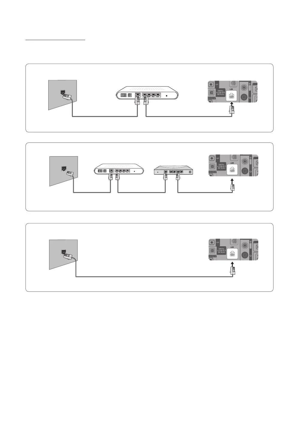 There are three main ways to connect your TV to your network using cable, depending on your network setup. They are