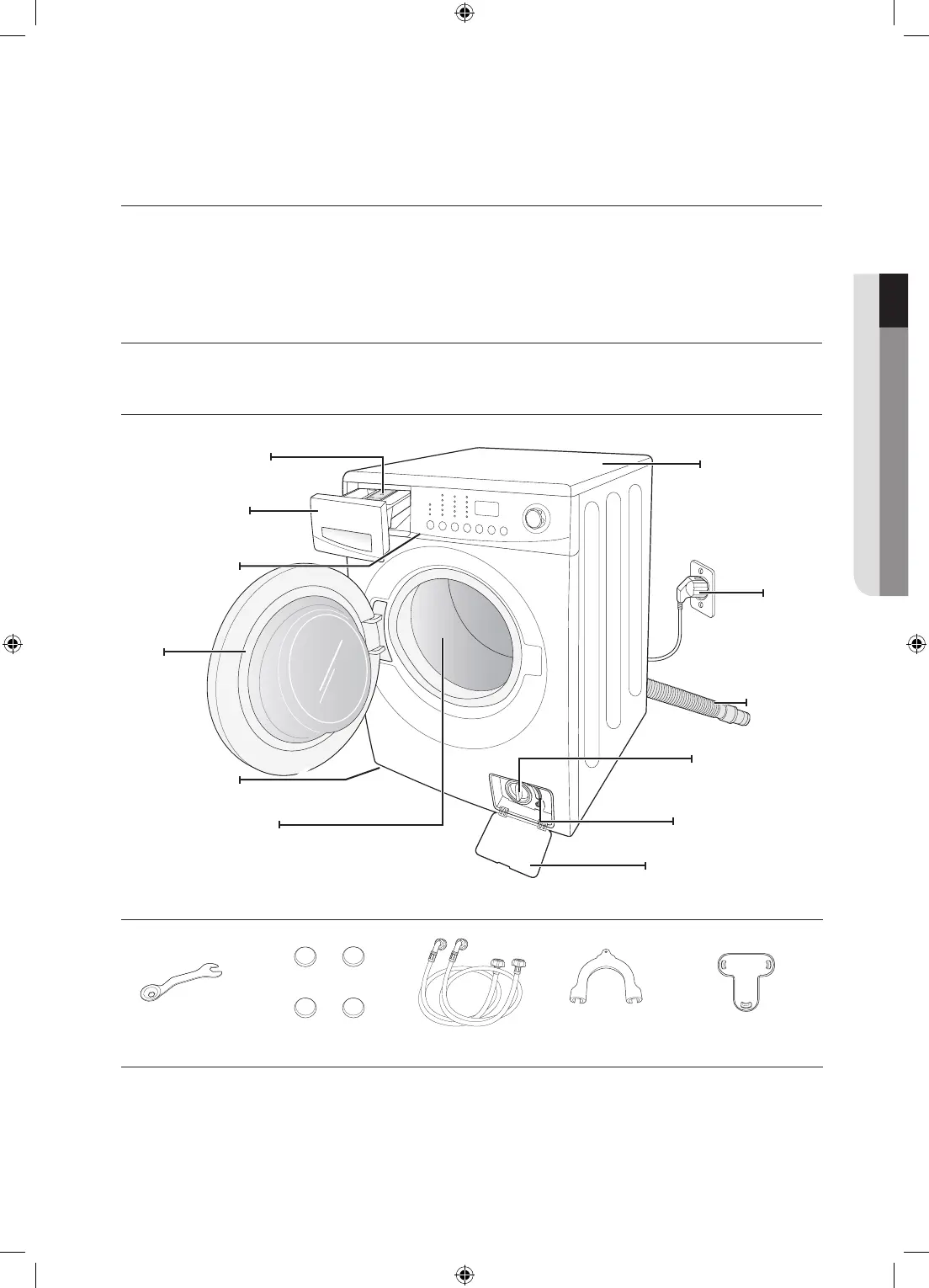 Carefully unpack your washing machine, and make sure you’ve received all of the parts shown below.