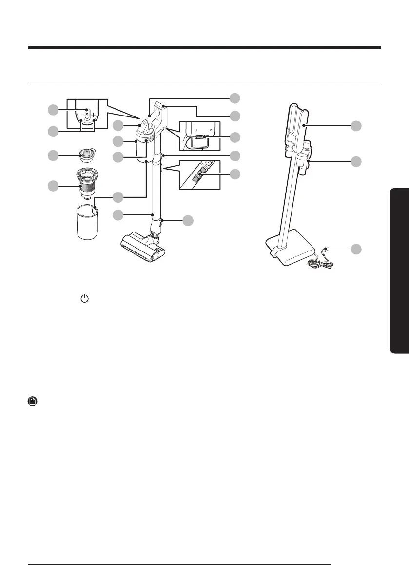 14 Knop voor het aanpassen van de lengte van de zuigbuis