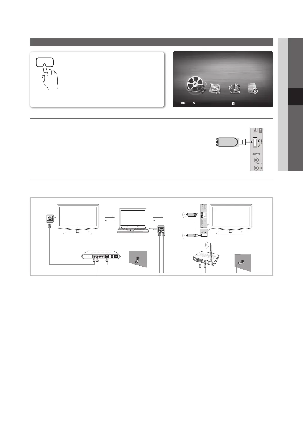 您可以透過 Media Play 模式中的網路連接,播放儲存在電腦或電視上的圖片、音樂和視訊。