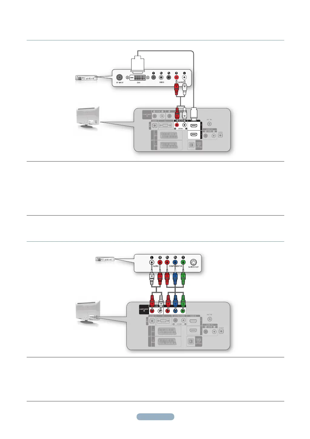 Connect Audio Cables(Not supplied) between the COMPONENT IN [R-AUDIO-L] jacks on the TV and the AUDIO