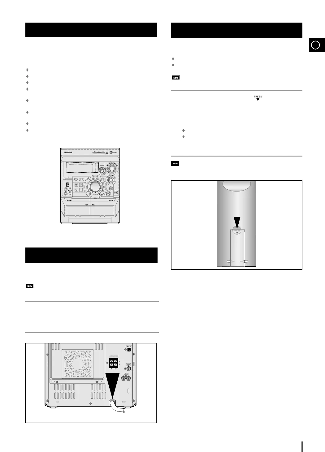 Plug the main lead (marked AC Cord on the rear of the system) into