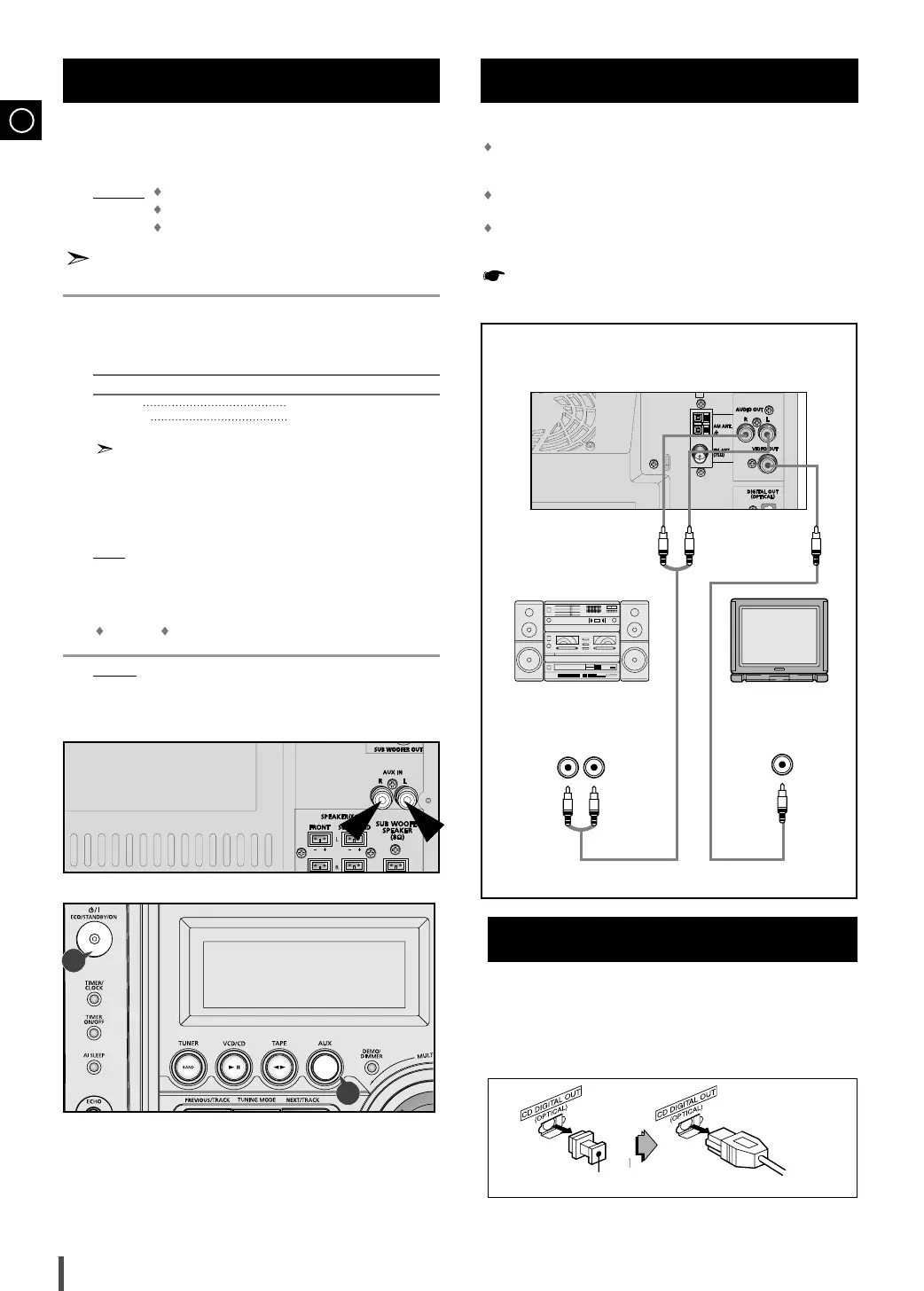 Then, connect an optical cable plug to the CD DIGITAL OUT jack.