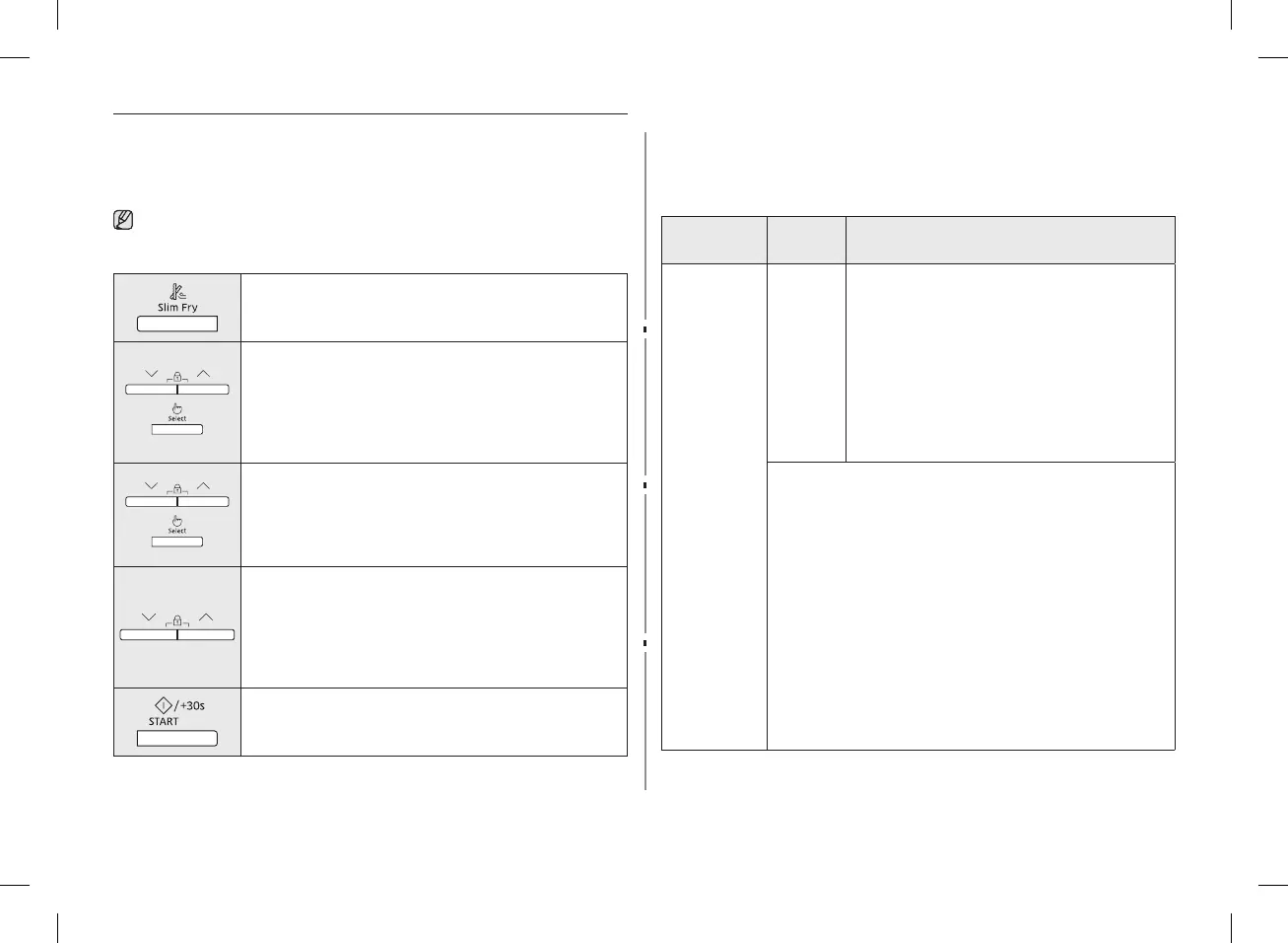 The following table presents the 22 Slim Fry auto programmes for frying. It contains its