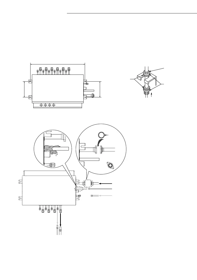 When xing the unit at the upper place using suspension bolts, use a nut and washer to vertically fasten the unit.