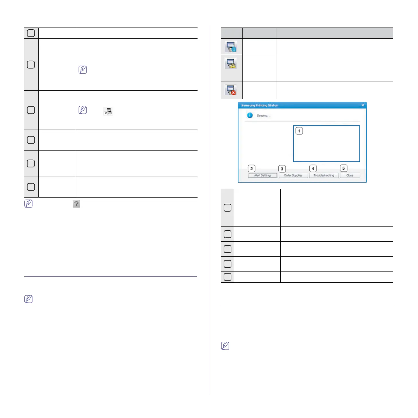 • The Samsung Printer Status window and its contents shown in this