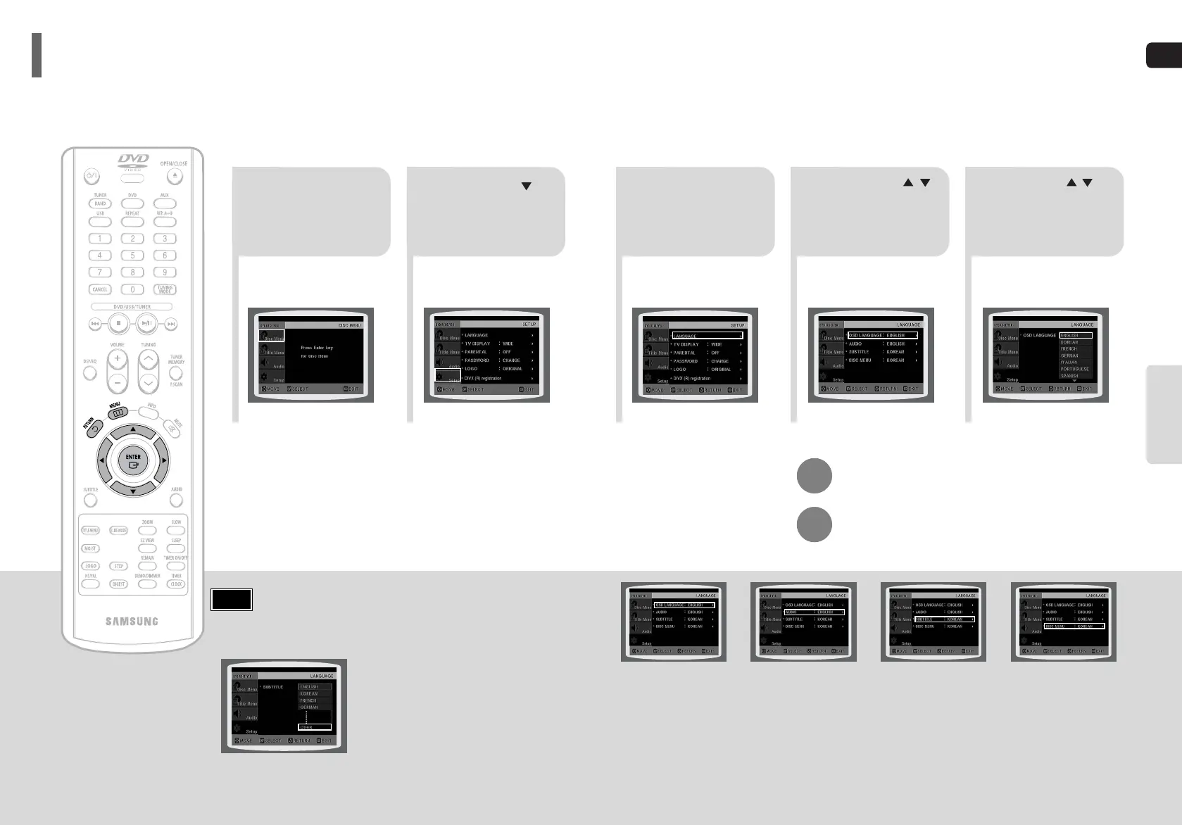 AUDIO, SUB TITLE and DISC MENU language can be selected.