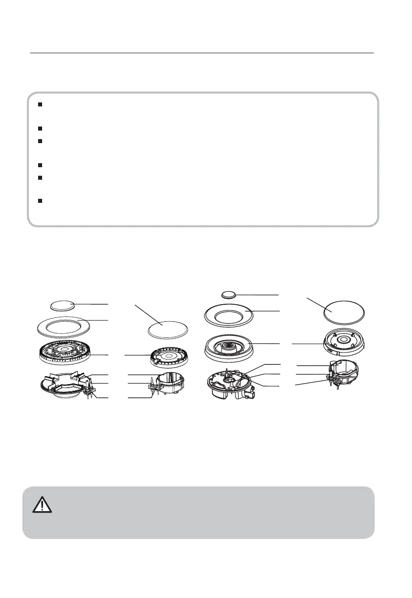 Wipe the fixed parts of the burner cup with a damp cloth and dry afterwards.
