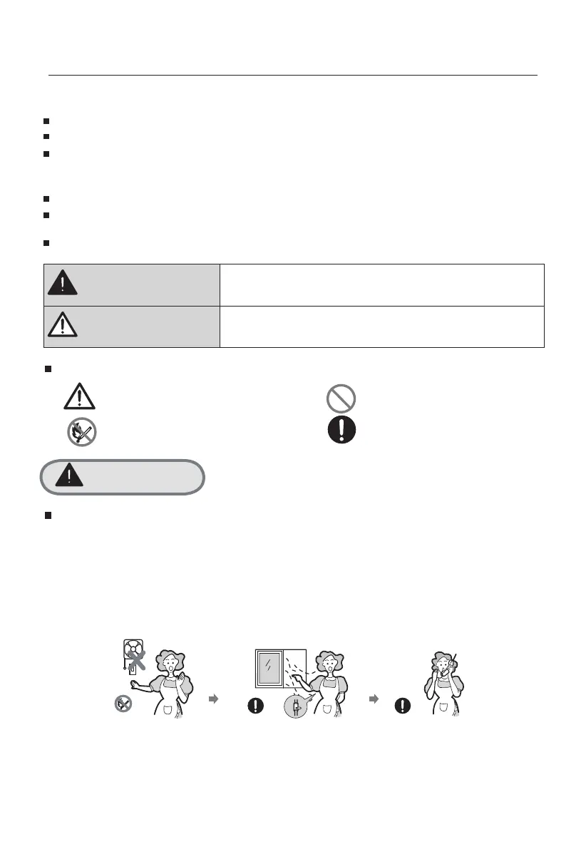 - Do not switch on/off any electrical appliance and do not touch any electric plug.