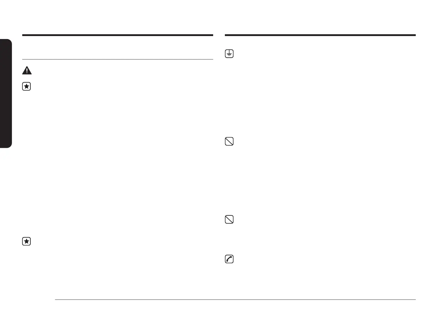 • Do not ground the appliance to a gas pipe, plastic water pipe,