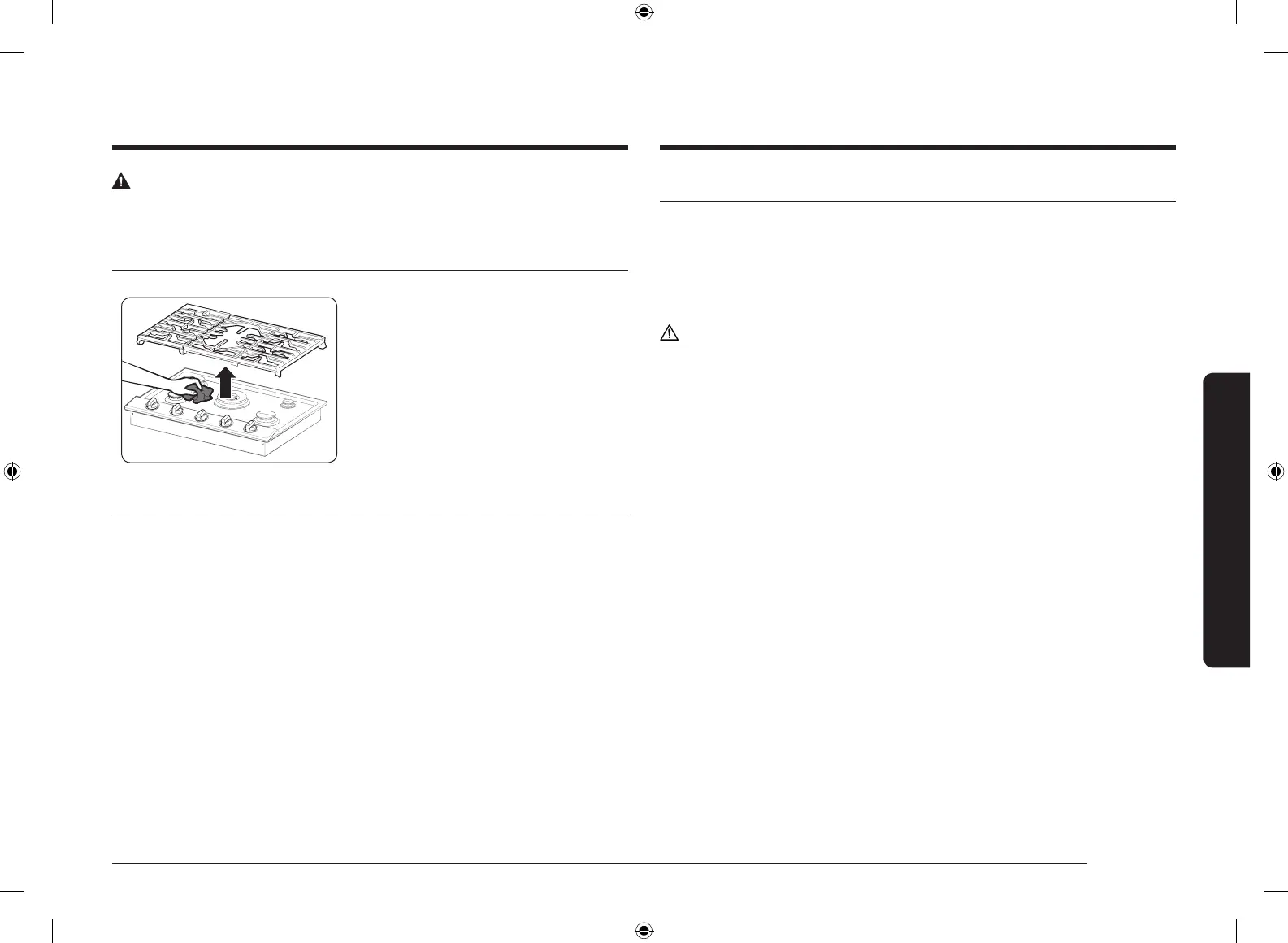 • Do not remove the cooktop surface to clean it. The gas lines leading to the burner