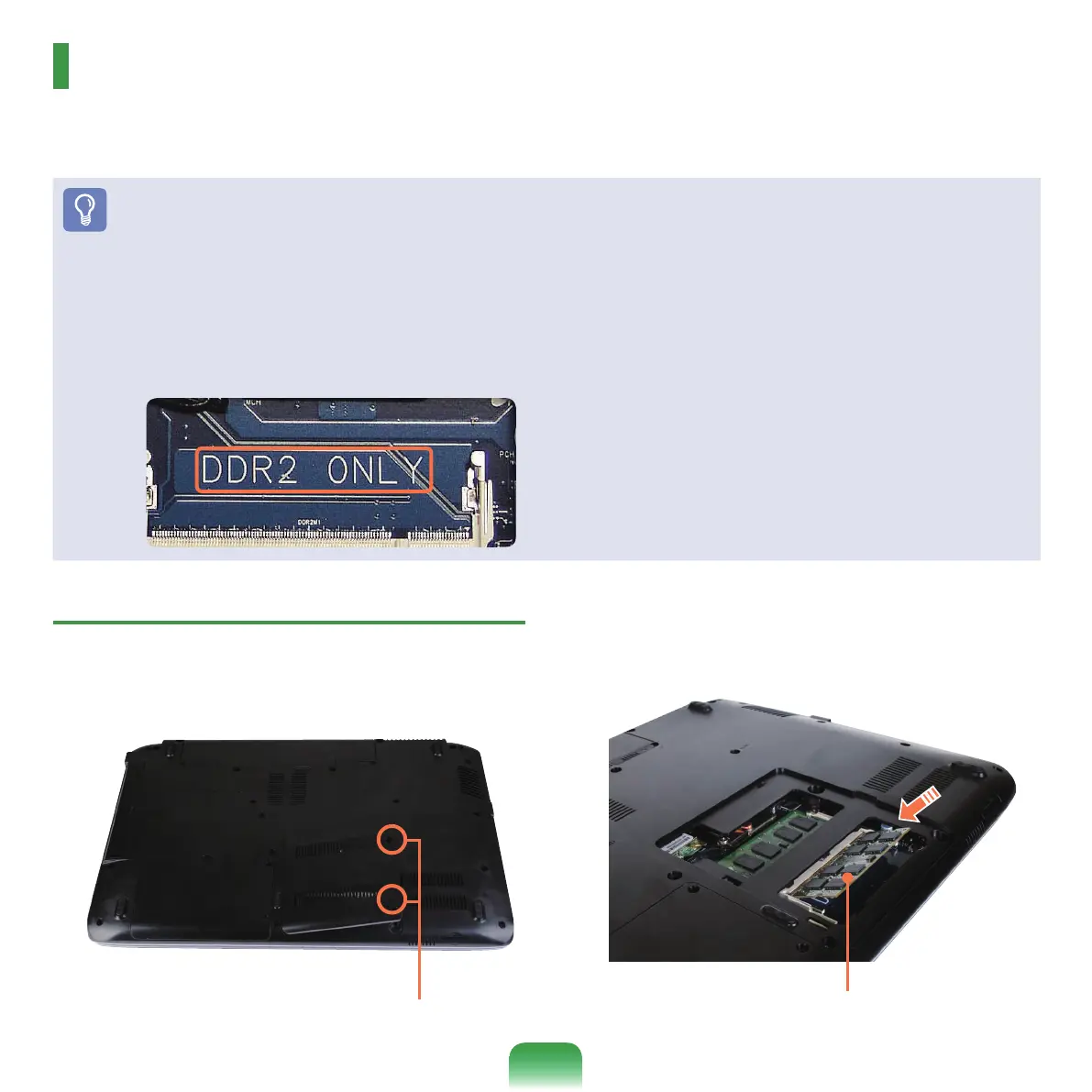 There are 2 memory slots and users can replace the installed memory or add new memory.