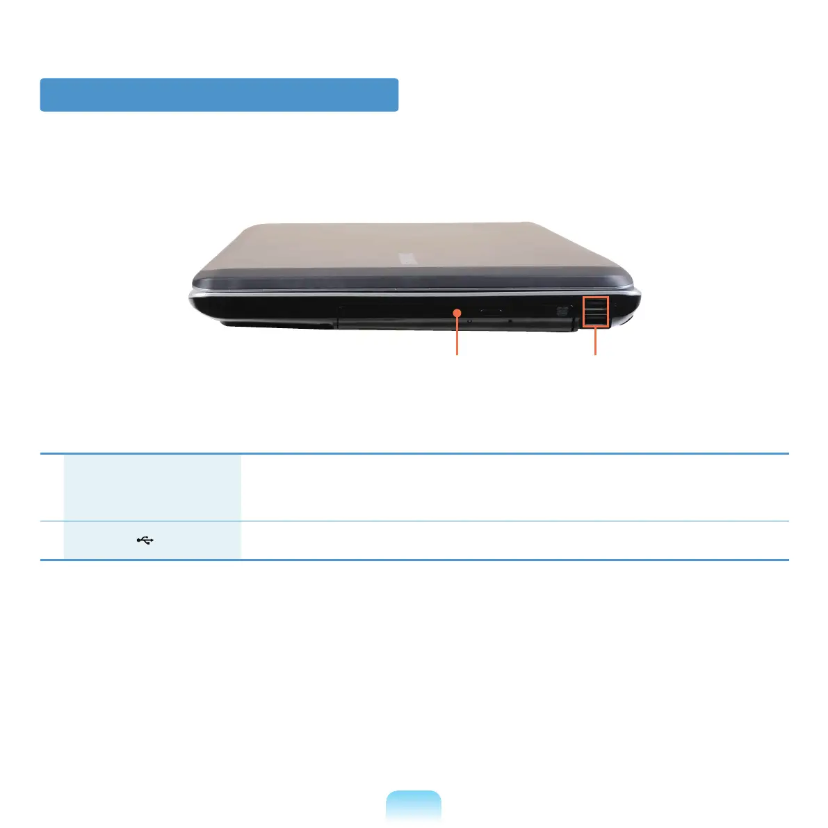 CD Drive(ODD) (Optional) Plays CD or DVD titles.