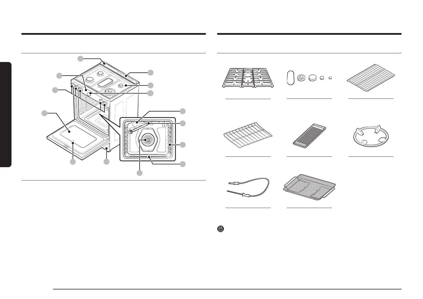10 Broil oven burner 11 Oven light 12 Oven rack system