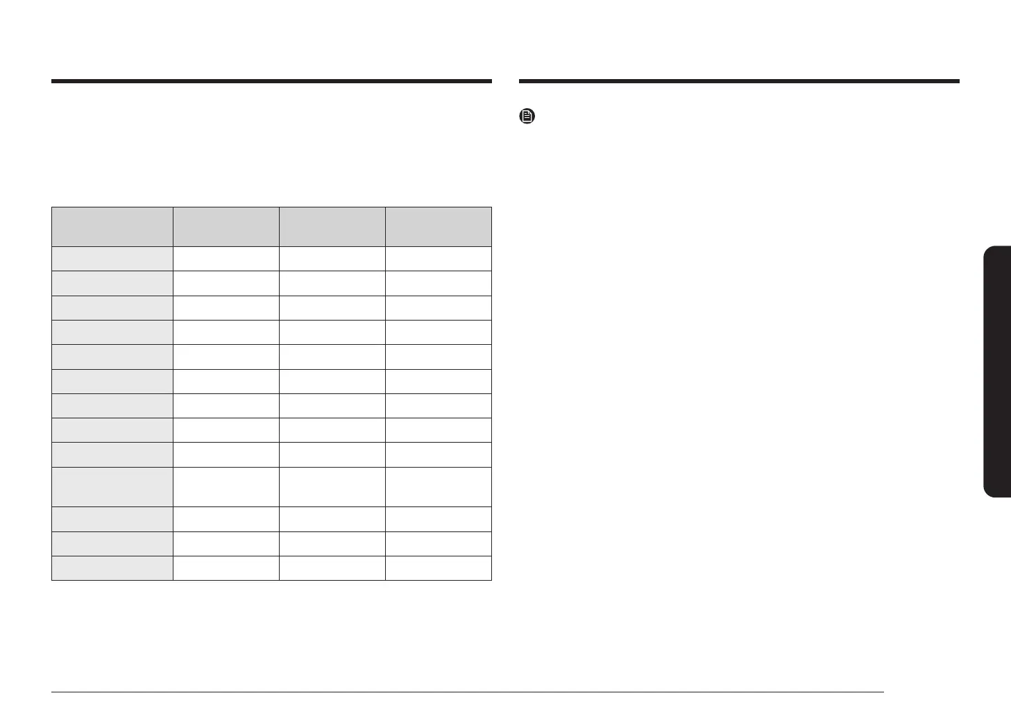 • Vegetables not listed in the table are recommended to be cooked at the default