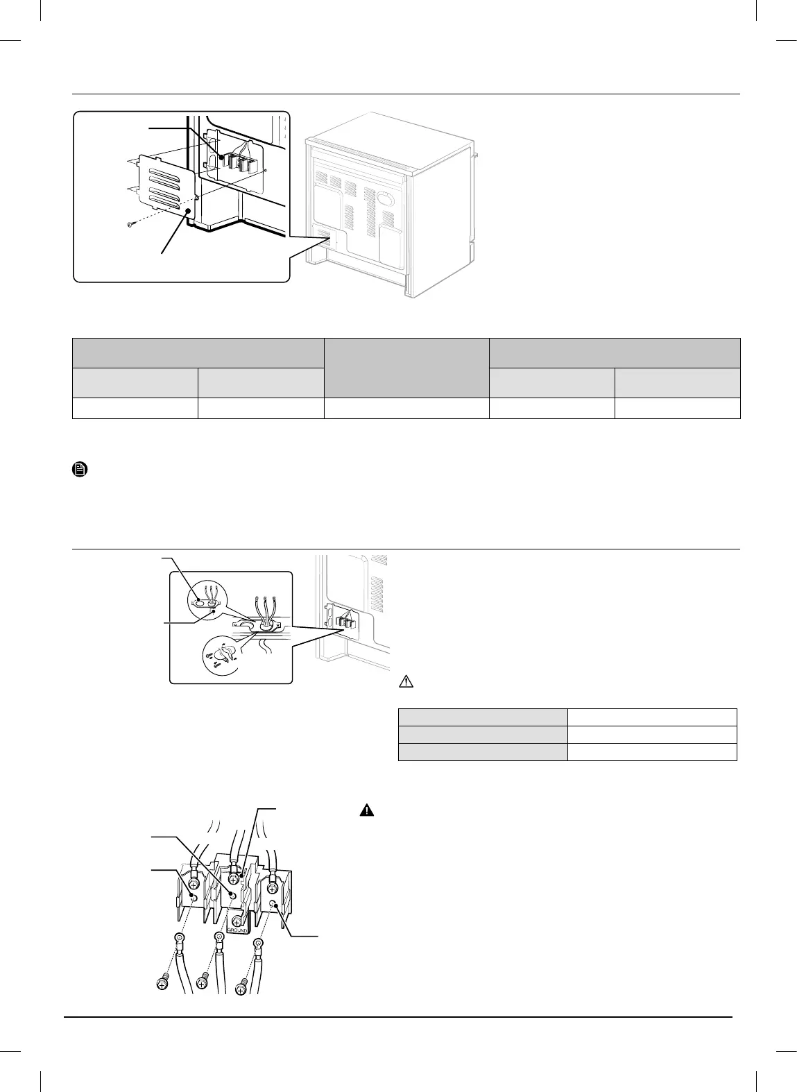 del cable de alimentación y en los terminales inferiores del bloque de
