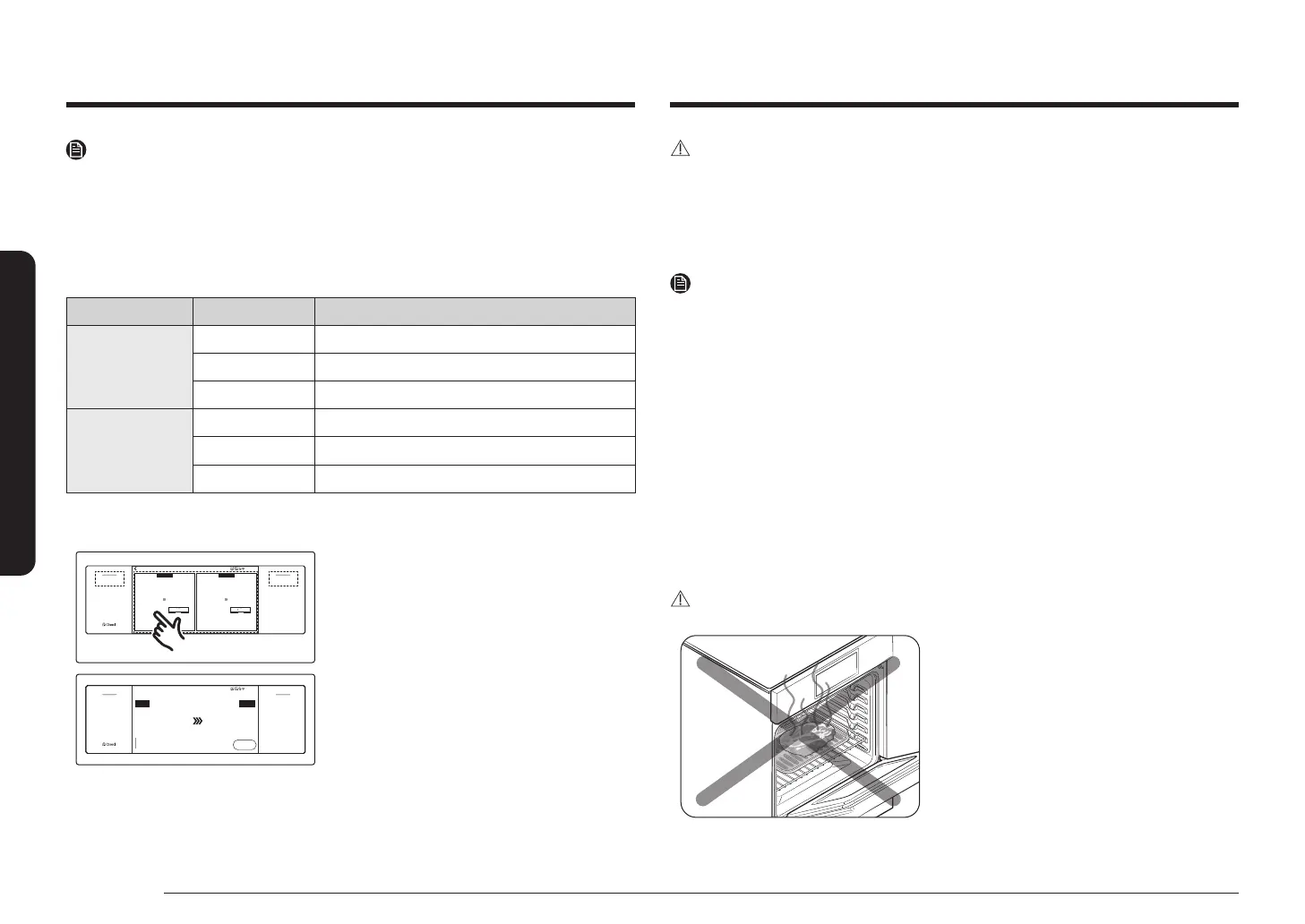 • If you leave the oven door open for more than 2 minutes when the oven is on, all