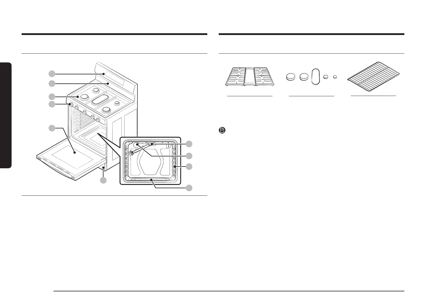 07 Broil oven burner 08 Oven light 09 Oven rack system