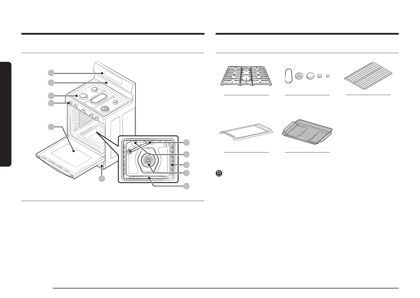 07 Broil oven burner 08 Oven light 09 Oven rack system