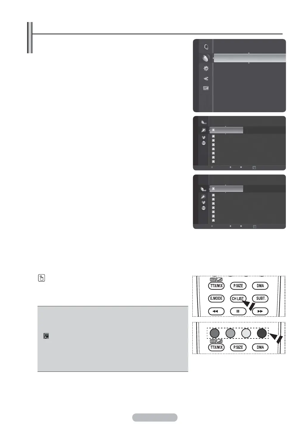 • Red (Channel Type): Toggle between your “TV”, “Radio”,