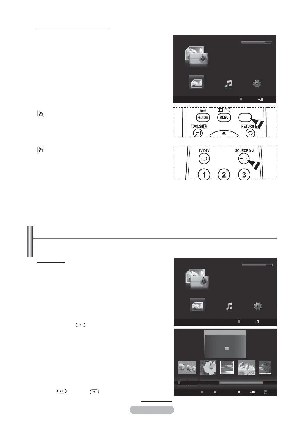 4 Press the ◄ or ► button to select an icon (Photo, Music, Setup), then press the ENTER button.