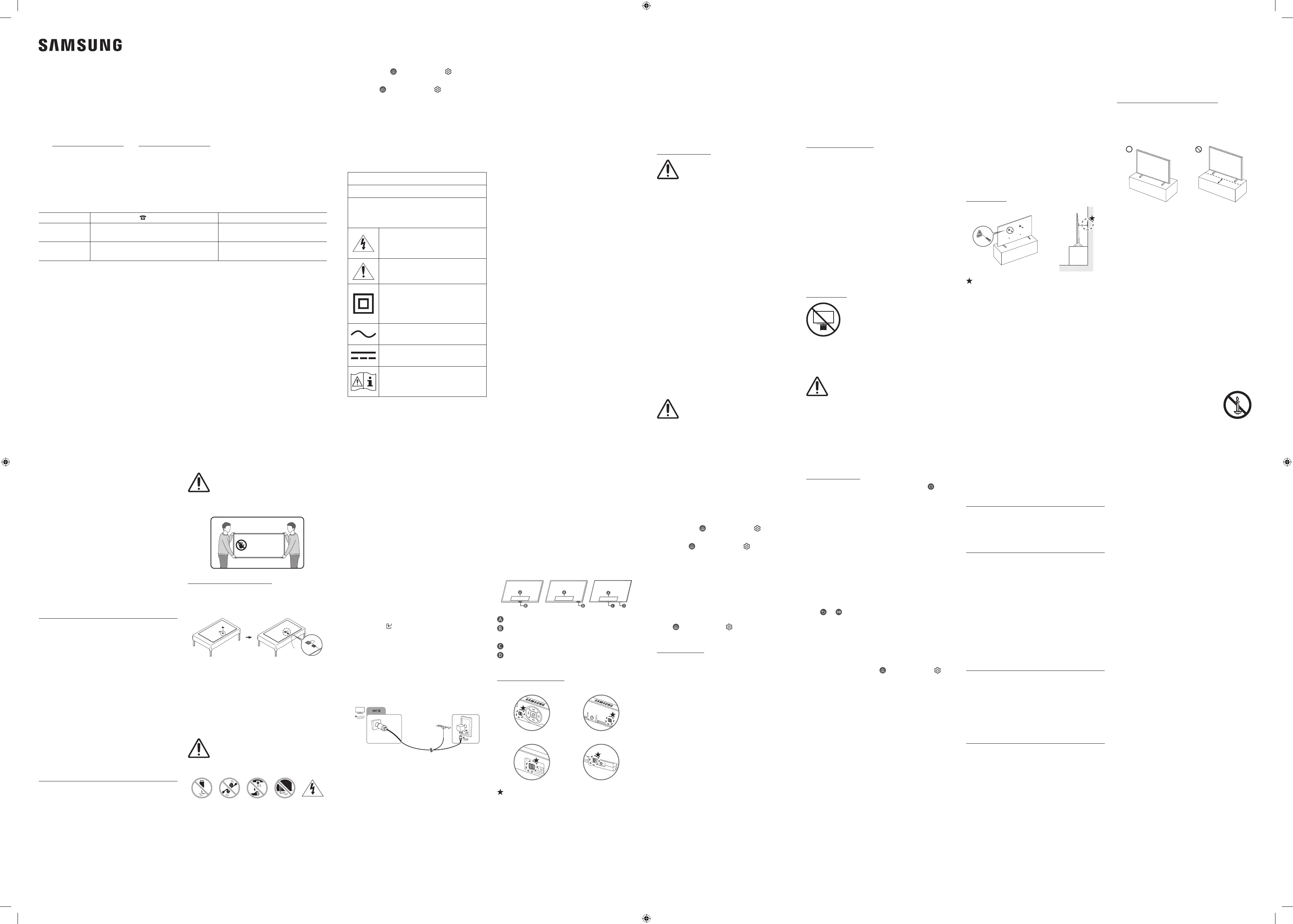 • 一律使用 Samsung 建議的櫥櫃或底座或安裝方法。