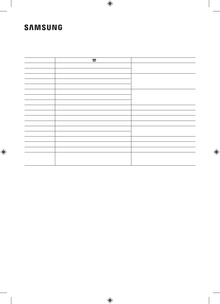 SOUTH AFRICA 0860 SAMSUNG (726 7864) www.samsung.com/za/support
