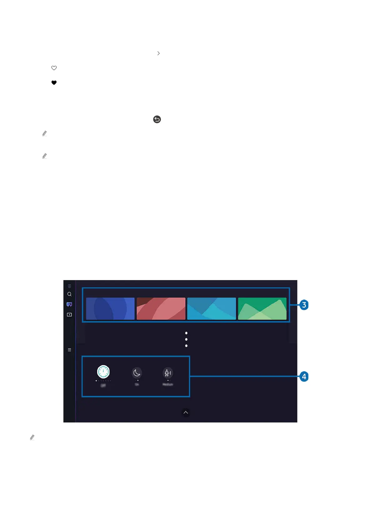 Add or delete specic images in Favourite by pressing Select button on the remote control. To view items that