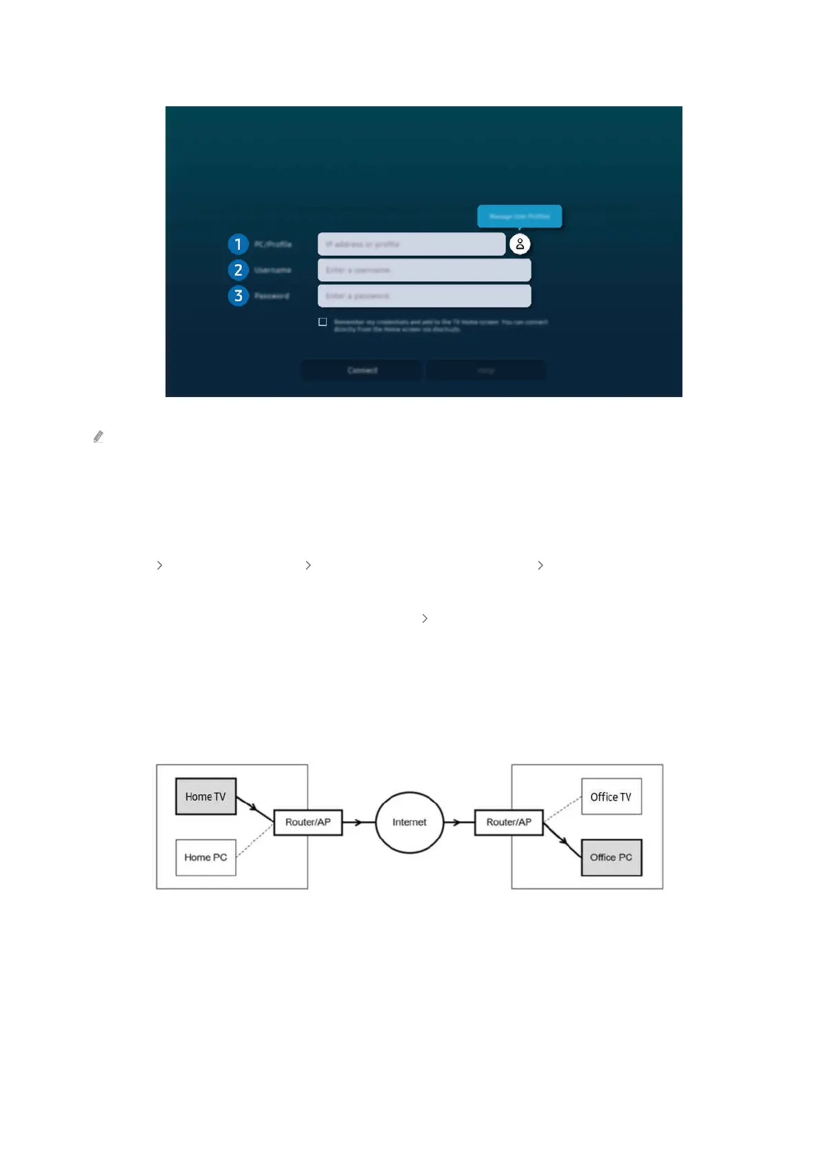 • When the TV and computer are not within the same network, it is required to know the public IP and configure