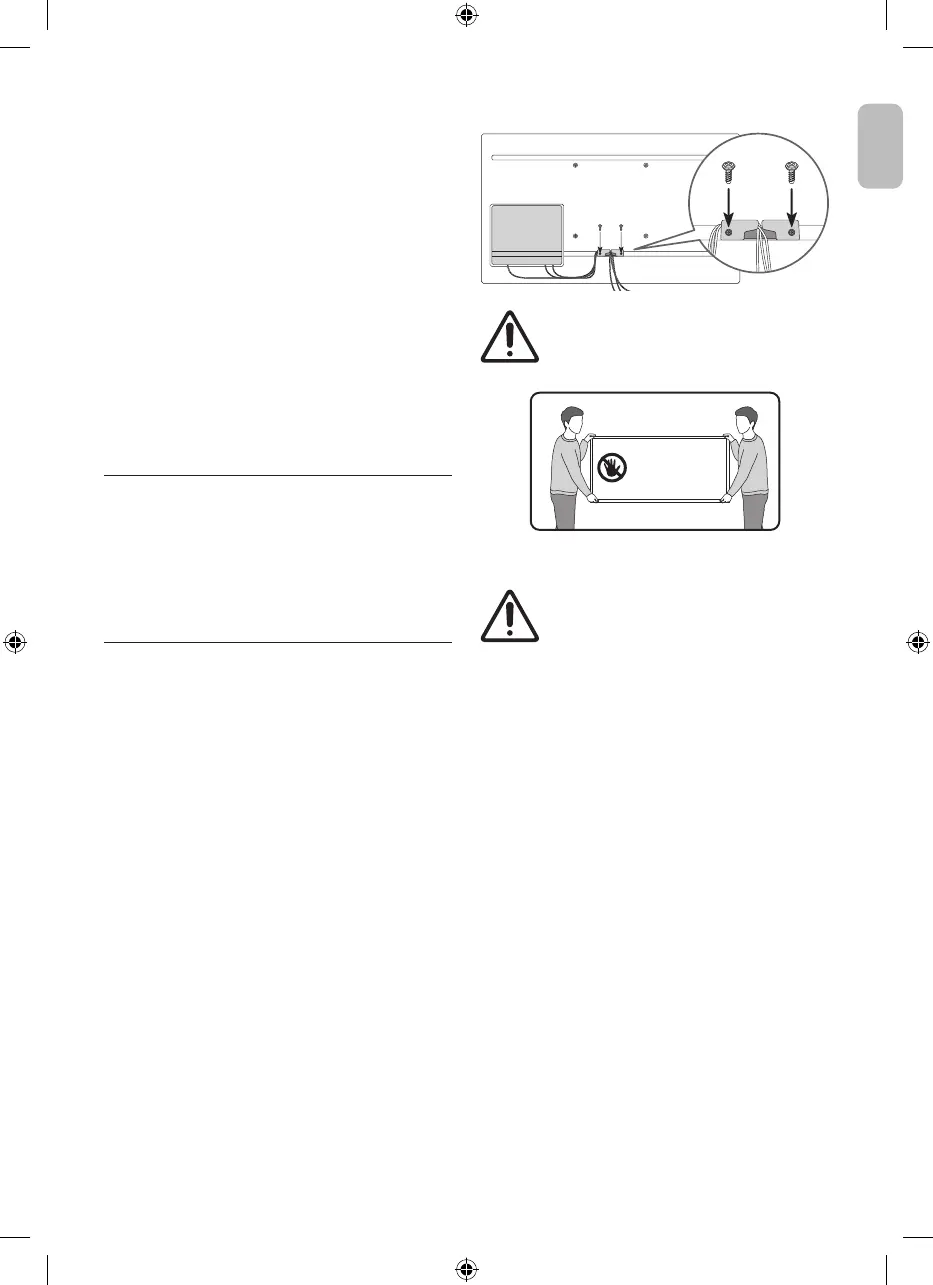 • Do not spray water or any liquid directly onto the TV. Any liquid