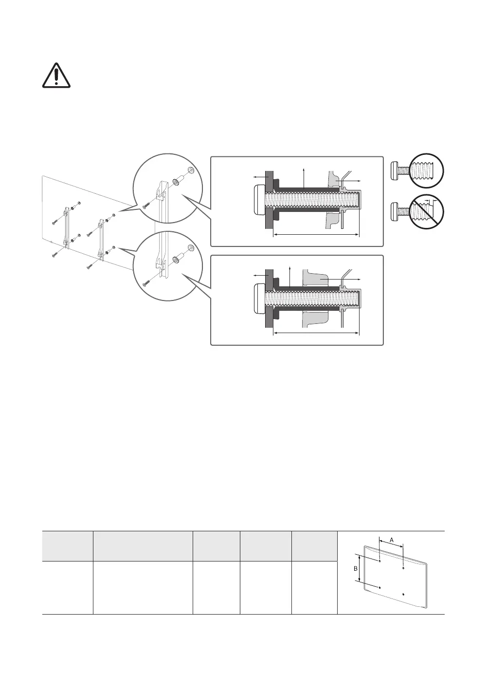 • If you are installing a third-party wall mount, note that the length of the screws you can use to attach the TV to