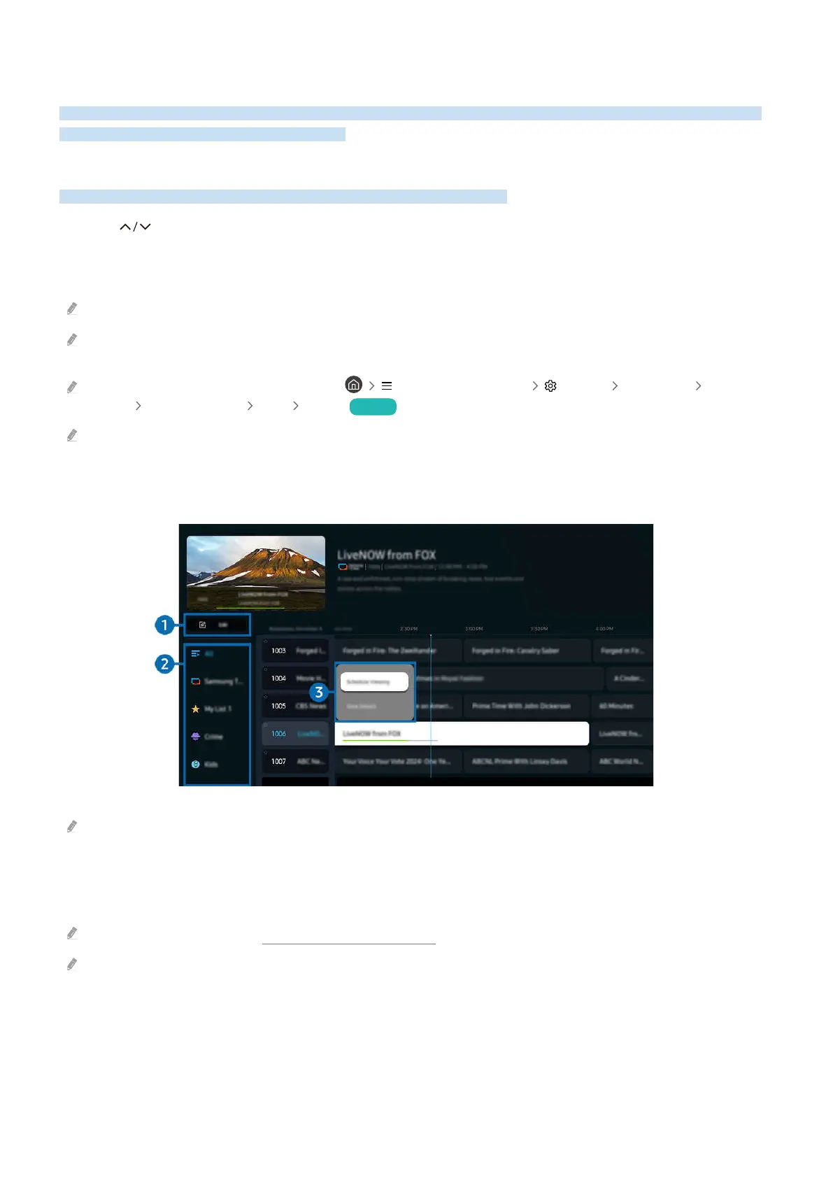 Use a variety of convenience features offered by your Samsung TV while watching TV. You can also edit your list of