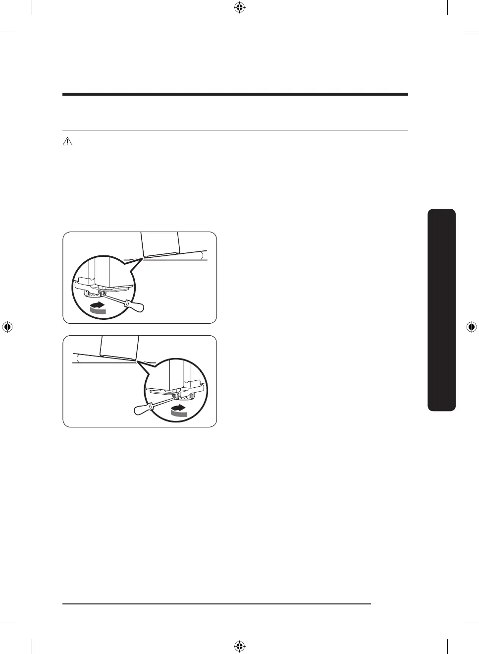 • Levelling must be performed with an empty refrigerator. Make sure no food items