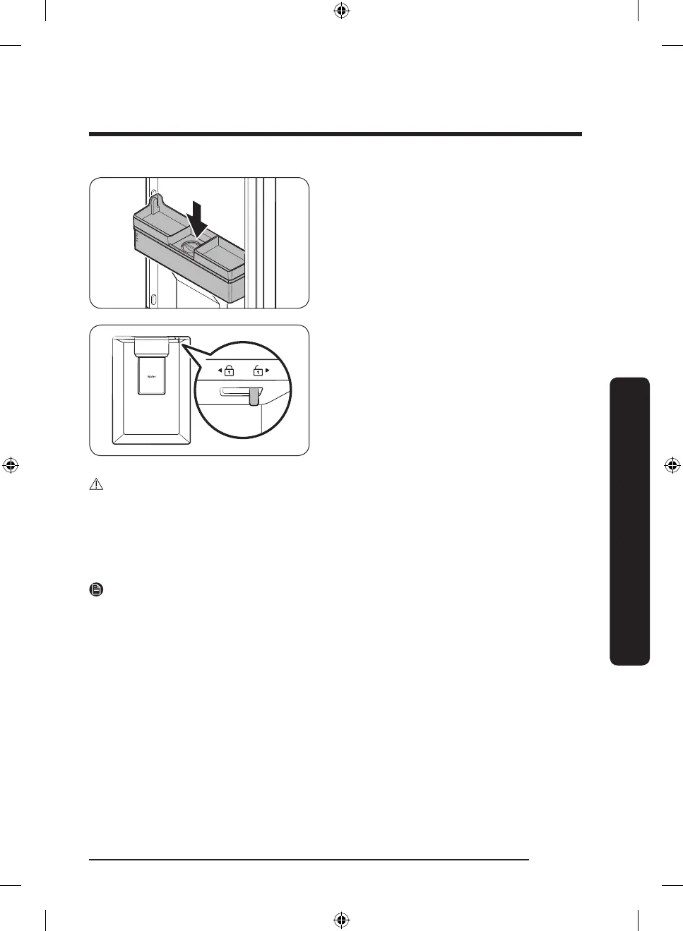 • Do not use the refrigerator without the water tank. This may reduce performance and