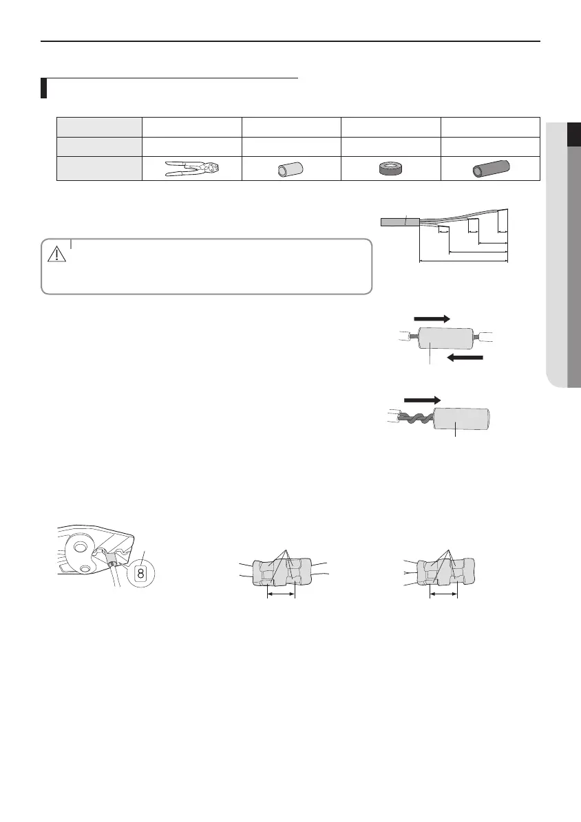 Tools Crimping pliers Connection sleeve (mm) Insulation tape Contraction tube (mm)