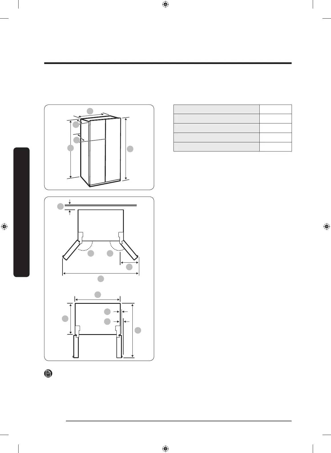 Per i requisiti di spazio per l'installazione vedere le gure e la tabella sotto.