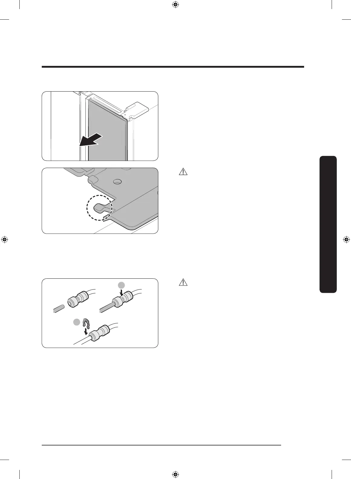 Una volta fatto passare il frigorifero nella soglia, ricollegare i tubi dell'acqua ed inserire i fermi in
