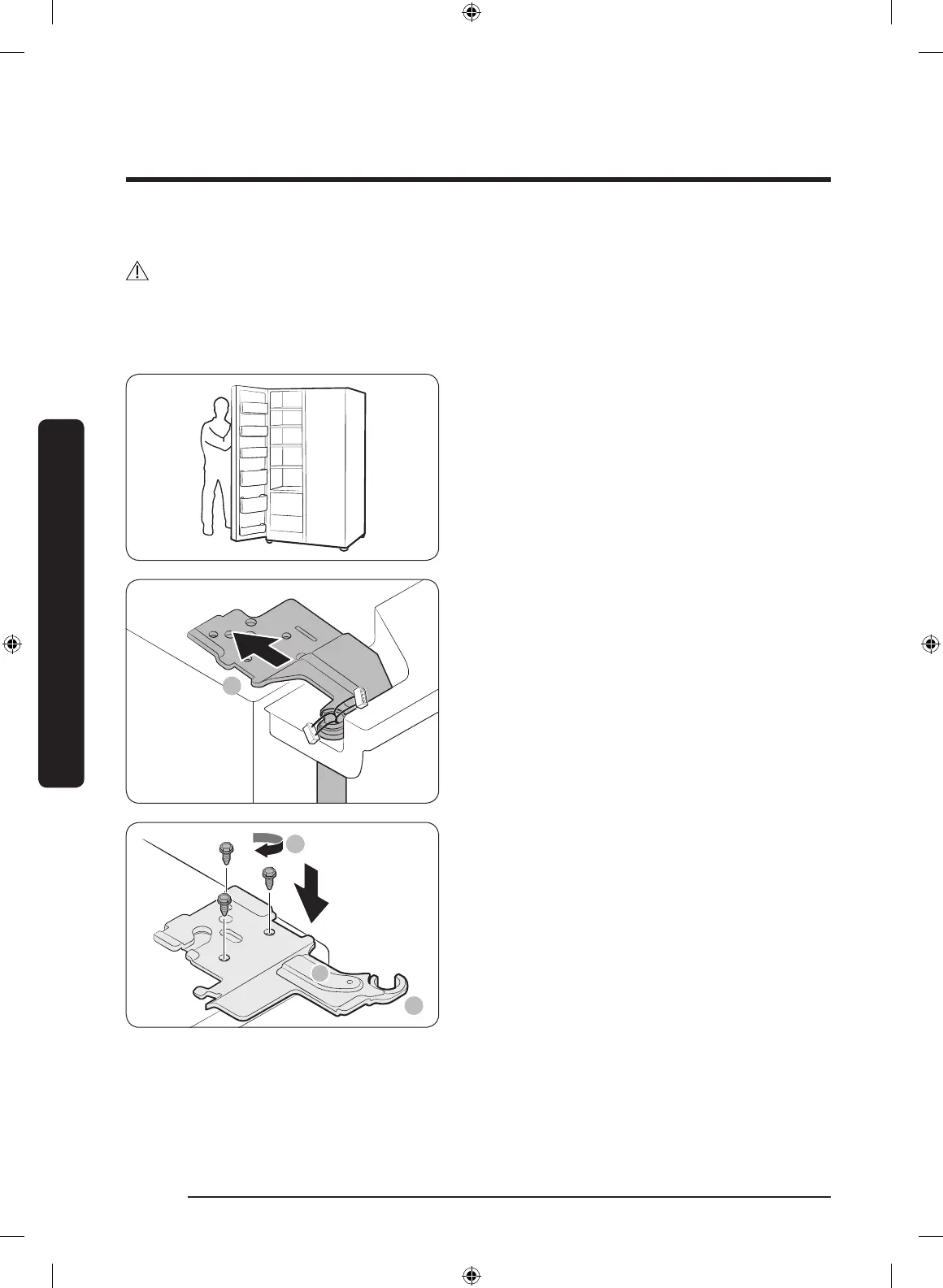 1. Inserire la porta del freezer nella cerniera