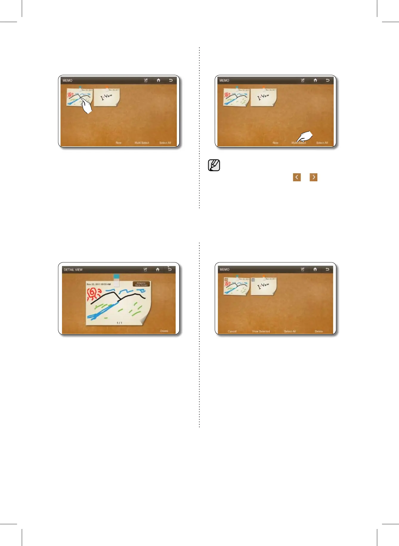 2. Touch the memo you want to display. 2. To view multiple memos, press the Multi Select