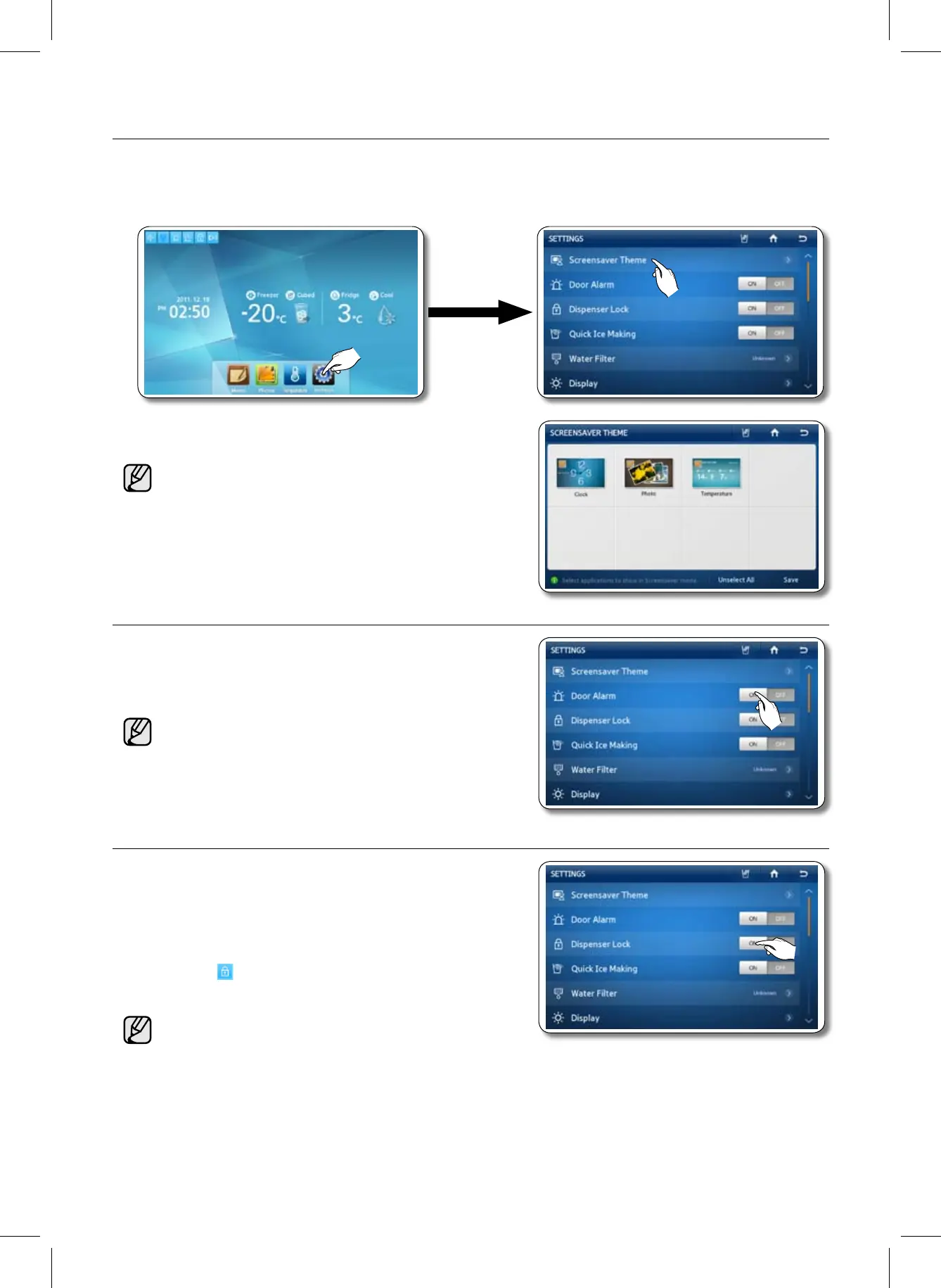 1. Select the Dispenser Lock ON or OFF buttons on the Settings