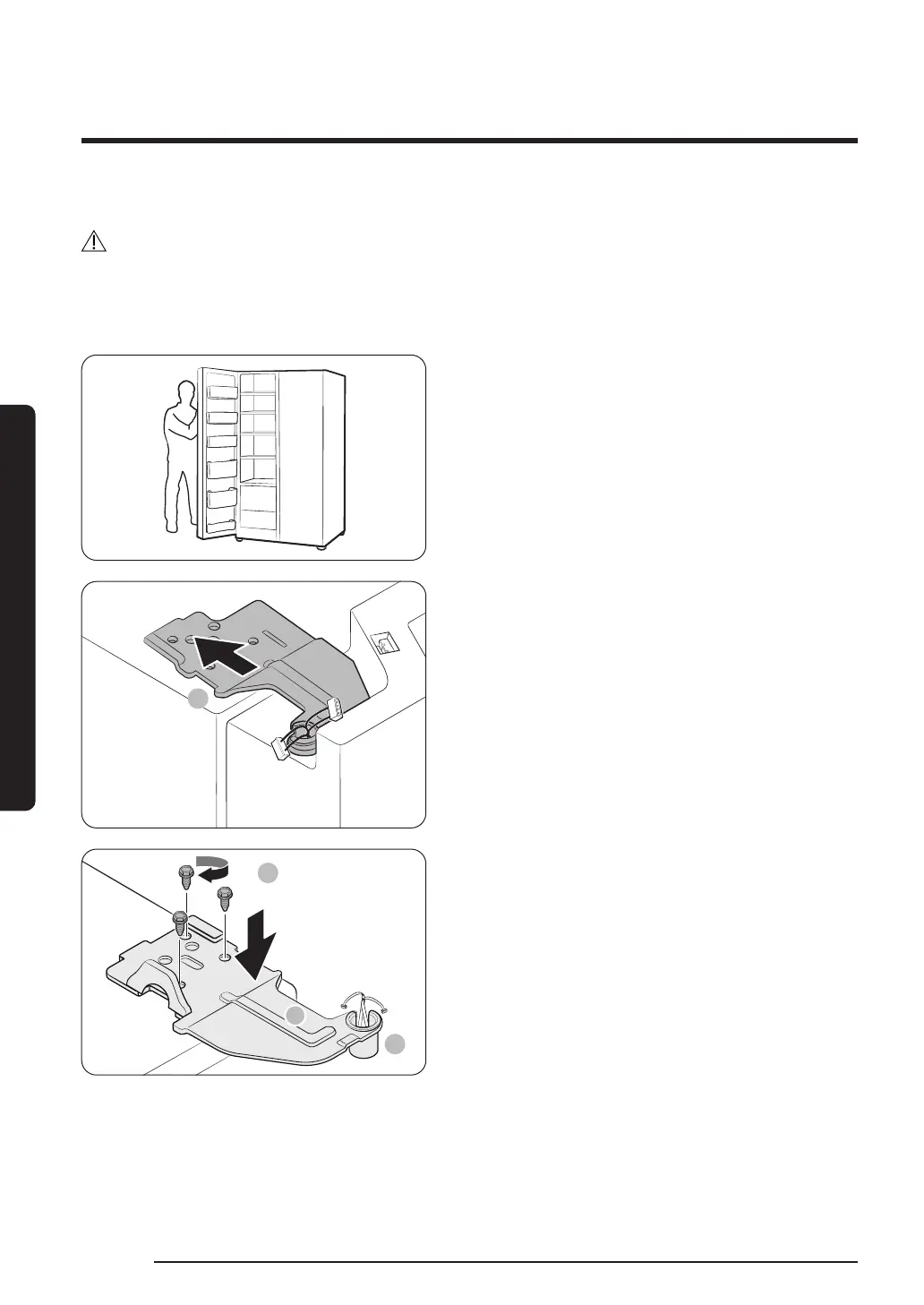 • The freezer door must be reattached before the fridge door.