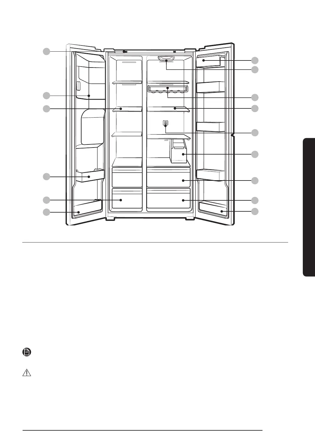 01 Freezer shelves 02 Multipurpose freezer bin 03 Dried food and meat