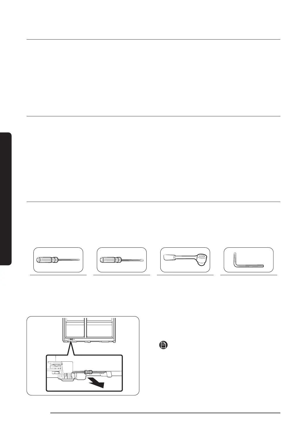 • The refrigerator is installed on a at, level surface with a reasonable clearance from the