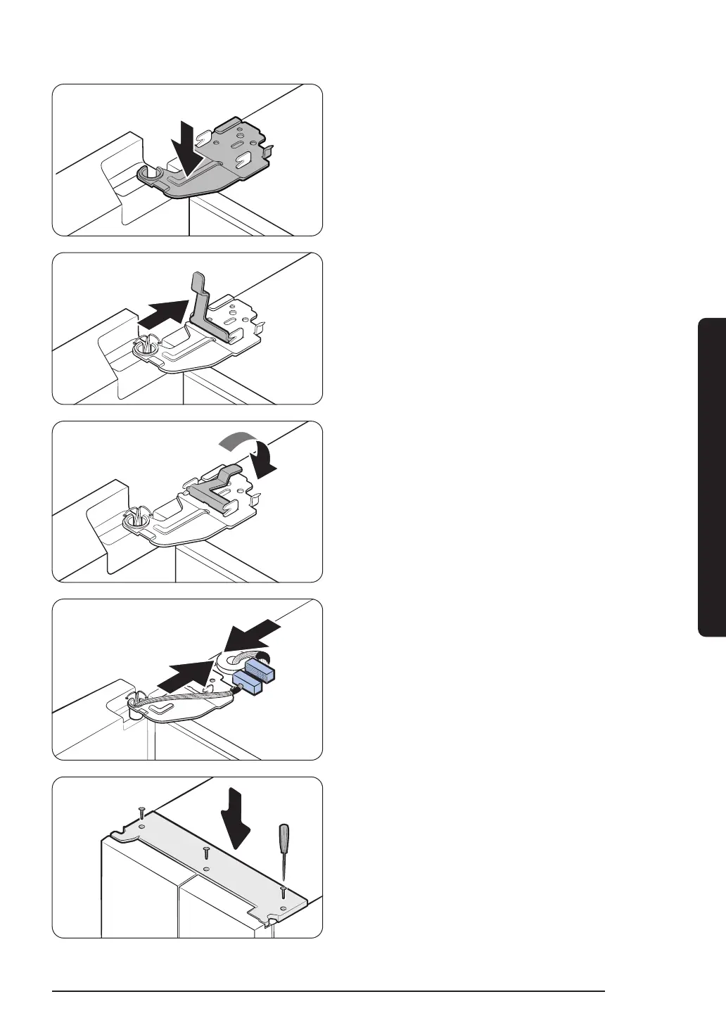 6. Insert the hinge cover with the front