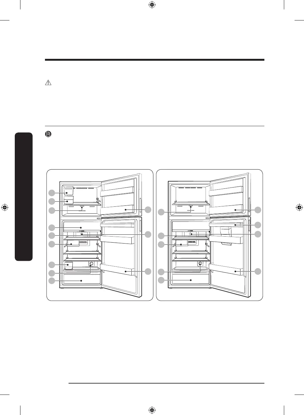 The actual image and provided parts of the refrigerator may differ, depending on the