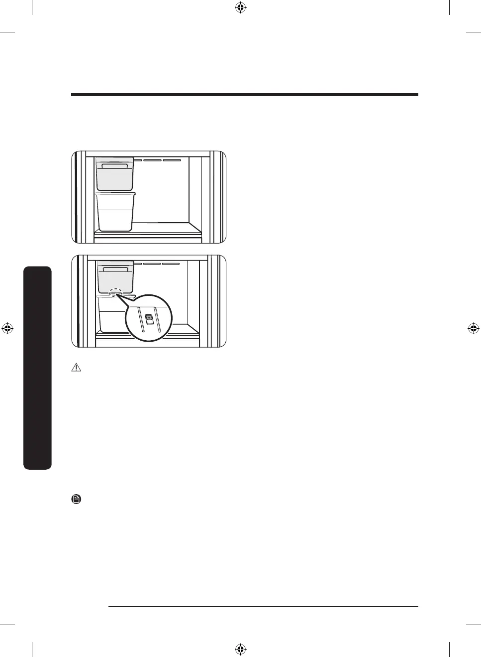 • When the refrigerator recovers power after a power failure, the ice bucket may