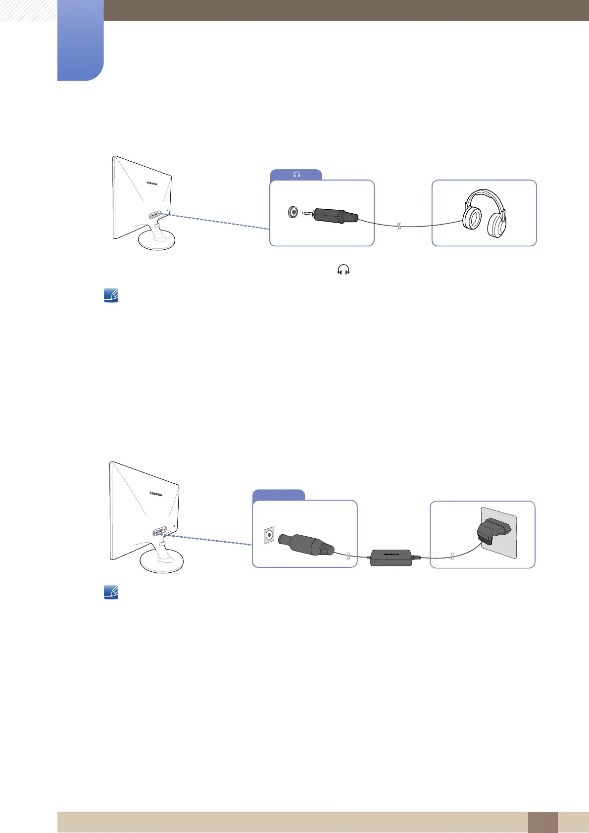 1 Connect an audio output device (headphones) to [ ] on the back of the product.