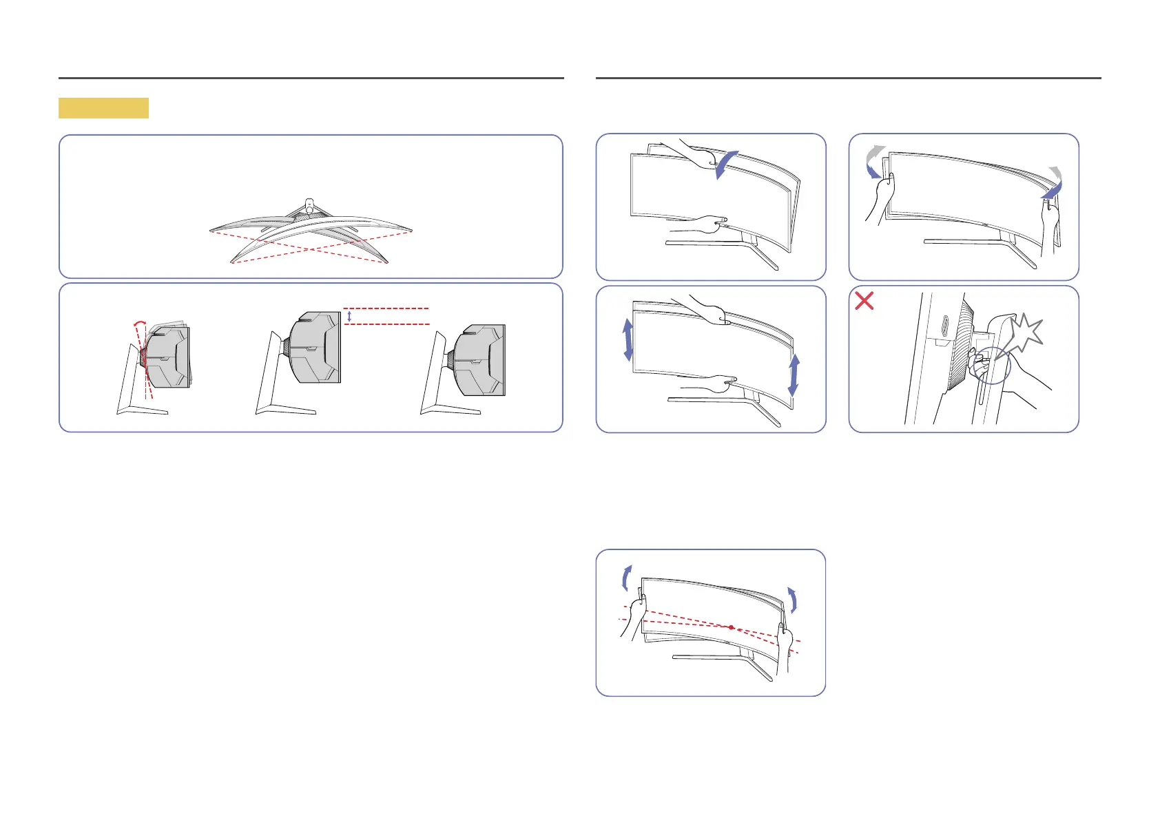 • Grasp the left and right sides of the monitor and adjust the swivel.