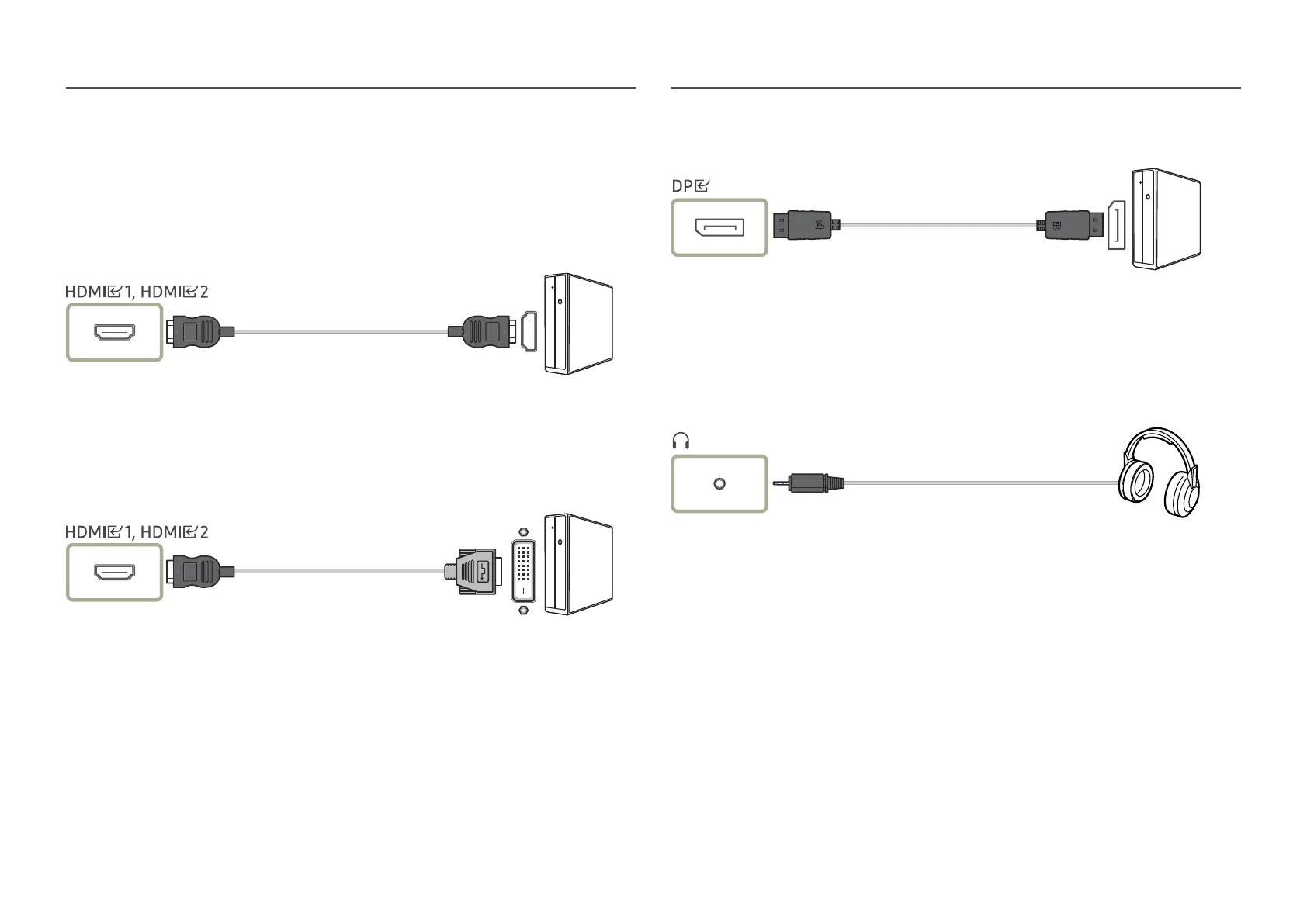 Use headphones or earphones when activating sound with an HDMI-HDMI or DP cable.