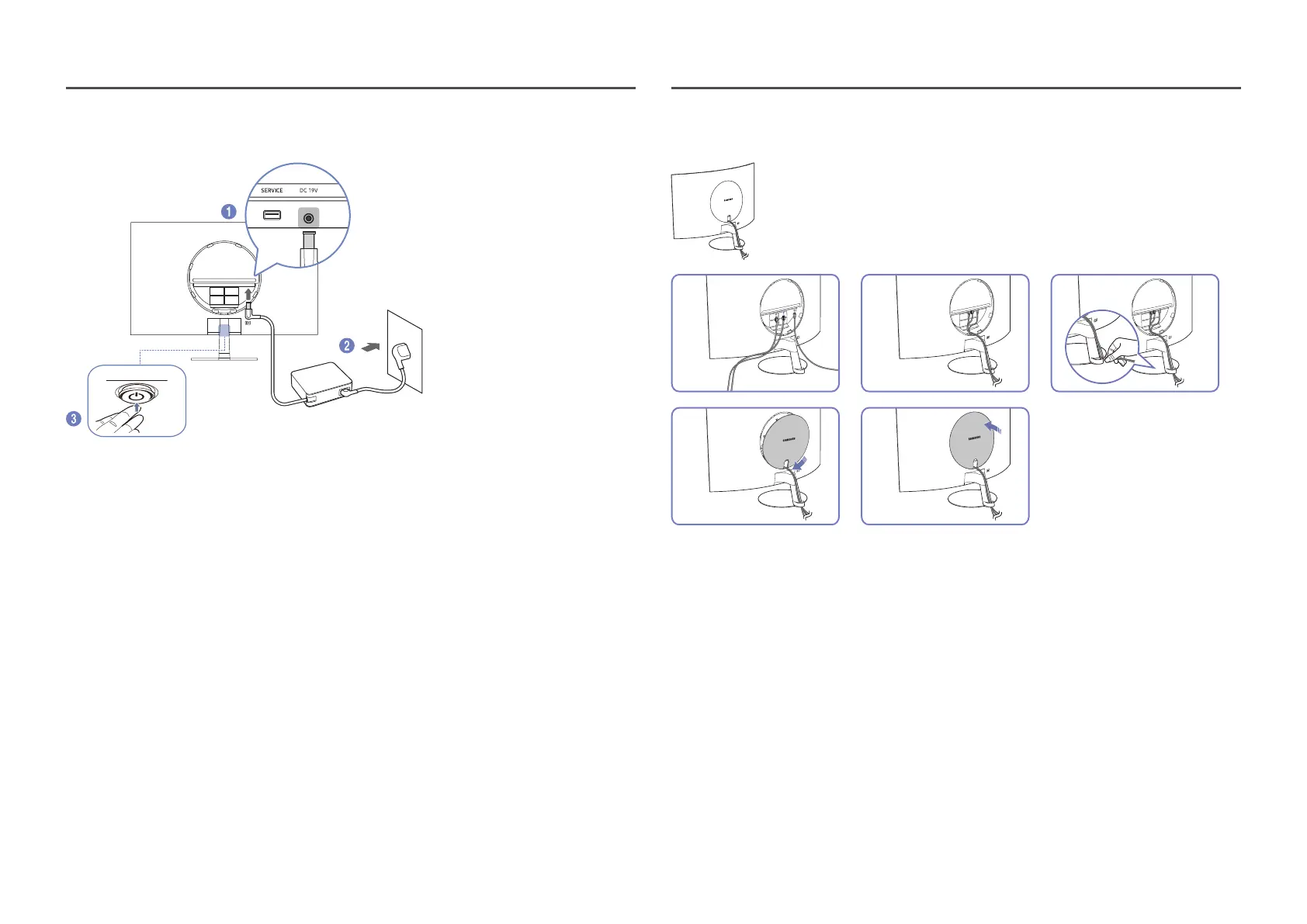Connect the power cable to the AC/DC adapter. Then, connect the AC/DC adapter to the DC 19V